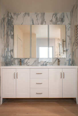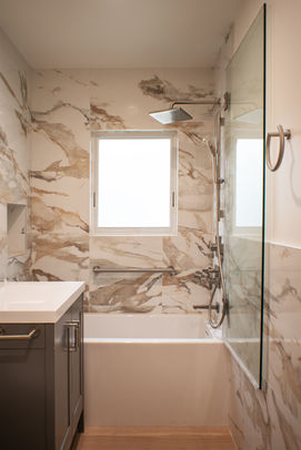 We were brought on board originally to replace windows, upgrade the kitchen and bathrooms, add a rear infill piece for a new primary bedroom suite and create a new separate and dedicated hallway to the rear yard. After Planning's 311 Notification and Historic Resource Assessment processes (qualifying the Category "C" historic designation) we secured approval for the large picture window at the front facade and were on our way with the scope. In the middle of what became the first phase of remodeling the upper level, we were requested to develop documents for a second permit to build out the crawl space under the new and existing bedrooms. The building department considers this a "Rooms Down" and in part because the new scope had a dedicated entrance, we were able to secure the second permit in days. The evolution in design of a modest, depression era, 2 bedroom, 2 bathroom single family home into a gracious, modern, 4 bedroom, 3 1/2 bathroom home with a state of the art kitchen, optimized flow and high flexibility of use was an exercise in hard work, patience and the maintenance of a clear vision throughout the complex approval and construction processes.